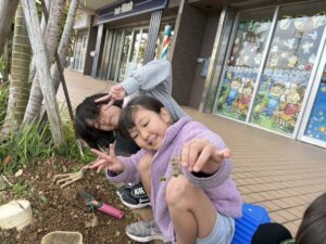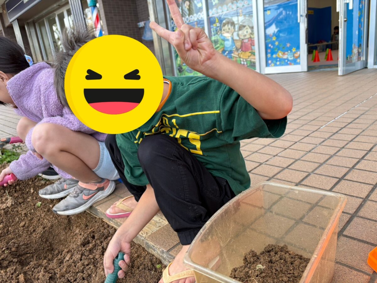 子どもたちから「今日もやりたい!」との声があり、前回に引き続き土遊びをしました。