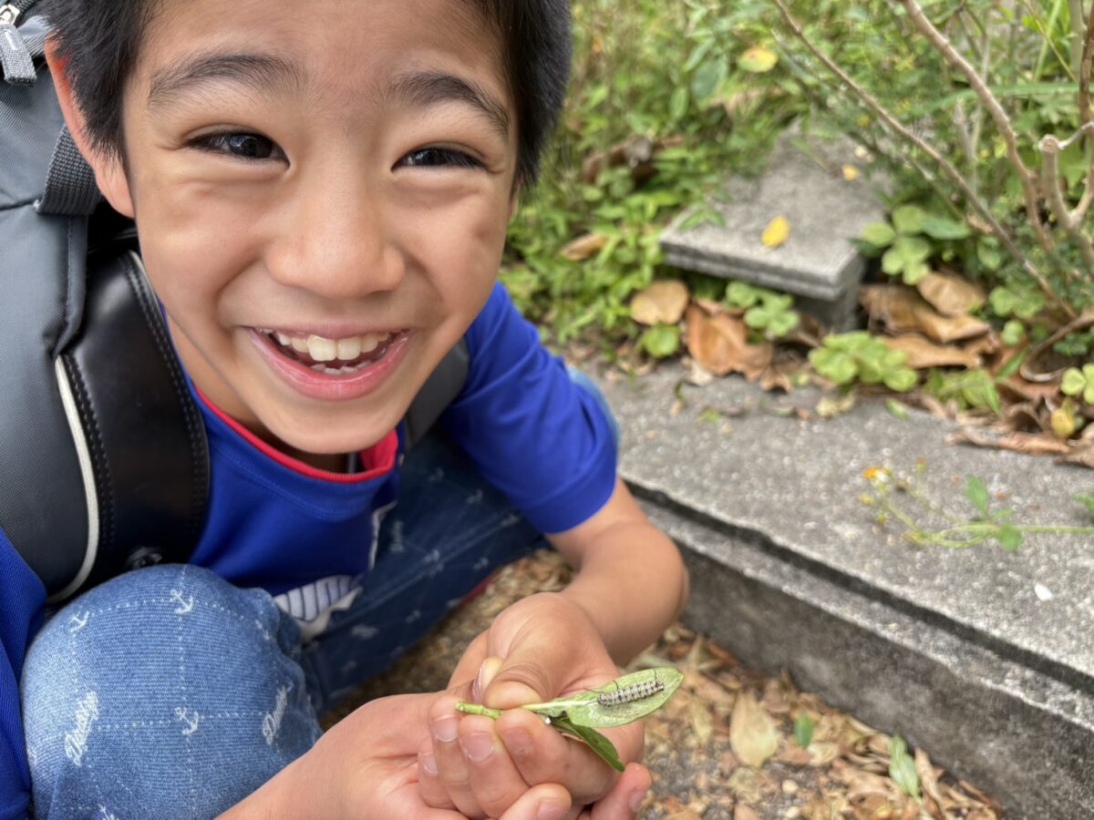 大好きな幼虫を見つけていい笑顔が見れました😆😆